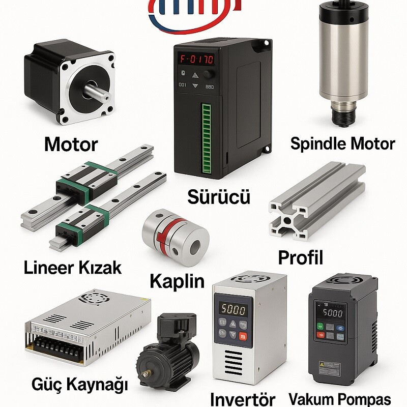 Masaüstü CNC Malzemeleri – Ekonomik Başlangıç Seviyesi Özet: Hobi, eğitim ve prototipleme amaçlı masaüstü CNC kurulumları için maliyet/performans odaklı başlangıç paketidir. 2.5D/3D ahşap, plastik, kompozit ve uygun malzemelerde öğrenmesi ve genişletmesi kolay bir yapı sunar. Neden Bu Set? Uygun bütçe: Gereksiz parça yok, ihtiyaca yönelik seçki. Modüler: 2/3/4 eksene kolayca genişler. Uyumluluk: GRBL, Mach3, LinuxCNC ekosistemleriyle çalışabilir. Basit kurulum: Eksen başına net parça mantığı; kablolama sade. Kimler İçin? İlk CNC’sini kurmak isteyen maker ve hobi kullanıcıları Okul/atölye uygulamaları ve proje tabanlı eğitimler Küçük parçalarda hızlı Ar-Ge/prototipleme ihtiyacı olanlar Setin Mantığı ve Parça İhtiyacı Eksen başına kural: Her eksen için 1 adet step motor + 1 adet step sürücü gerekir. 2 eksen: 2 motor + 2 sürücü 3 eksen: 3 motor + 3 sürücü 4 eksen: 4 motor + 4 sürücü Kontrol kartı: Tek (1) adet kontrol kartı tüm eksenleri yönetir; ek karta gerek yoktur (kartın desteklediği eksen sayısını doğrulayınız). Güç kaynağı: Toplam akıma göre seçilir; eksen sayısı arttıkça kapasite yükseltilmelidir. Spindle (opsiyonel): Malzemeye göre 300 W – 1.5 kW arası seçeneklerle genişletilebilir. Önerilen Tipik Kurulumlar 3 Eksen (X-Y-Z) Başlangıç 3× step motor (uygun NEMA gövde/tork) 3× step sürücü (motor akım/voltajına uyumlu) 1× kontrol kartı (en az 3 eksen destekli) 1× güç kaynağı (toplam akım + %20 emniyet payı) Acil stop ve limit switch seti önerilir 4 Eksen (A döner ilaveli) 4× step motor + 4× step sürücü 1× kontrol kartı (4 eksen destekli) Daha yüksek kapasiteli güç kaynağı İsteğe bağlı 4. eksen aparatları (chuck, tabla) Performans ve Kullanım İpuçları Tork/hız dengesi: Daha büyük NEMA gövde daha yüksek tork sağlar, akım ihtiyacı artar. Mikrostep ayarı: Yüzey kalitesini artırır; hız/tork dengesini gözetin. Limit switch: Referanslama ve güvenlik için tercih edin. Acil stop: Görünür ve erişilebilir konumlandırın. Kablo yönetimi: Sinyal ve güç hatlarını ayırın; ekranlı kablo tercih edin. Soğutma: Sürücüler için hava akışı sağlayın; kapalı pano içinde fan kullanın. Yazılım Akışı (CAD → CAM → Kontrol) CAD: Parça tasarımı CAM: Takım yolu ve G-code üretimi Kontrol: G-code yürütme (GRBL / Mach3 / LinuxCNC ile uyumlu denetim) Sık Sorulanlar 3 eksen kuracağım; kaç motor ve sürücü gerekir? – 3 motor + 3 sürücü. Tek kontrol kartı tüm eksenleri yönetir. Daha sonra 4. ekseni ekleyebilir miyim? – Evet. Kartınız 4 ekseni destekliyorsa bir motor ve bir sürücü ekleyerek genişletebilirsiniz. Hangi güç kaynağı yeterli olur? – Motor faz akımı × eksen sayısı üzerinden hesaplayın, en az %20 emniyet payı ekleyin. Spindle şart mı? – Gravür/PCB/ahşap için düşük güçlü spindle çoğu zaman yeterlidir; talaşlı kesimde daha yüksek kW tercih edilir. Sipariş Notları Eksen sayınızı (2/3/4) belirtin. Motor gövde/tork ihtiyacınızı paylaşın (ör. NEMA 23 – 2.2 Nm). Sürücü akımı/voltajını motorla uyumlu seçin. Kontrol kartı tek adettir; eksen sayısı arttıkça yalnızca motor + sürücü eklenir. İsteğe bağlı: spindle, limit switch, acil stop, kablo/fan/kanal aksesuarları. Teknik Özet Eksene göre modüler paket 2→3→4 eksene kolay genişleme Tek kartla çok eksen yönetimi Step motor + sürücü eşleşmesi Güvenlik için limit switch ve acil stop önerilir