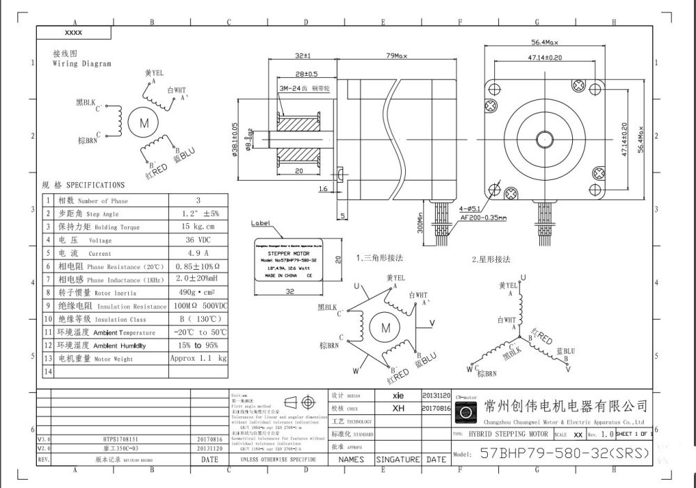 Bu 1.47 Nm Nema 23 57Bhp79 step motorun standart bağlantı şeması aşağıdaki gibidir: