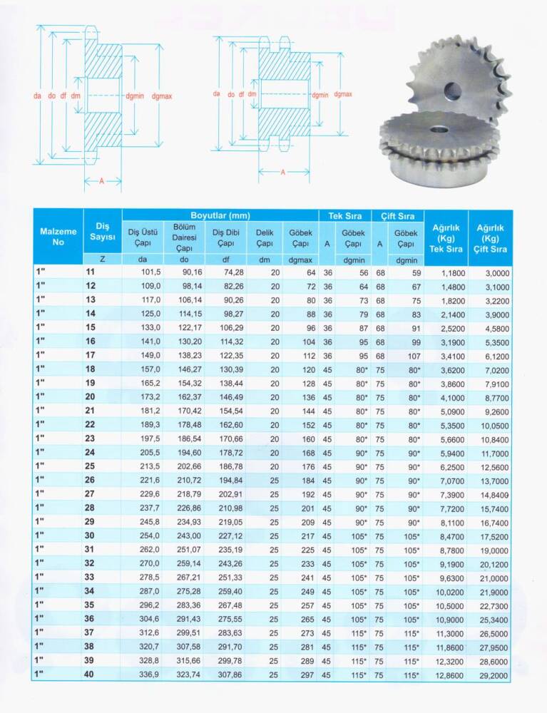 1 İnç Zincir Dişli 16 B1-10 Çeşitleri