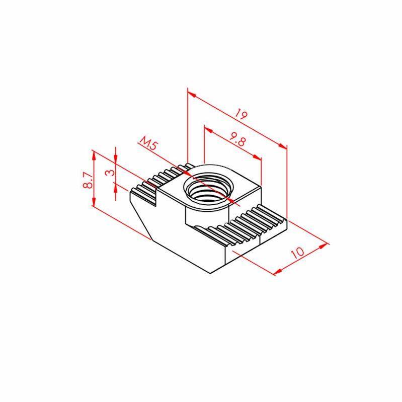 - Yüksek Mekanik Stabilite: Profil kanalına sıkıca batarak oluşturduğu tutuş, montajın uzun ömürlü ve sağlam olmasını garanti eder. Bu, M5 cıvata ile birleştiğinde optimum bağlantı mukavemeti sunar.