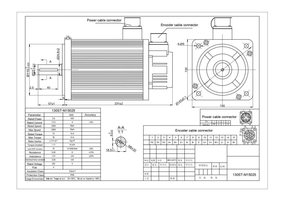 130ST-M15025 kodlu servo motor, endüstriyel uygulamalarda kullanılan 3,8 kW gücünde bir AC servo motordur.