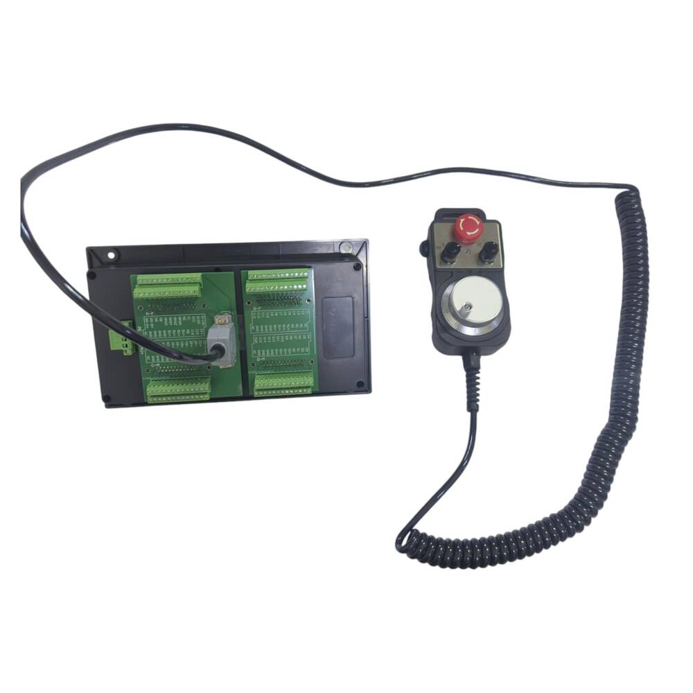 Ürüne dahil olan profesyonel el çarkı, manuel kontrol için hem hız modu hem de pozisyon modu sunar. Bu modlar arasında geçiş, ünitenin 7 inç TFT LCD ekranındaki kullanıcı arayüzü üzerinden veya el çarkının üzerindeki özel bir buton aracılığıyla yapılır. El çarkı ile eksenleri hassas bir şekilde konumlandırabilir veya belirli bir hızda hareket ettirebilirsiniz. Kullanım detayları ve ayar adımları için kullanma kılavuzuna başvurmanız önerilir.