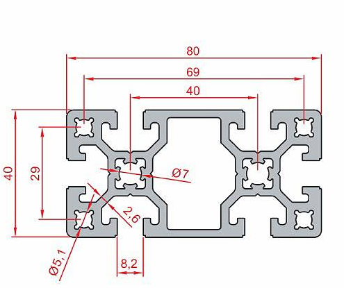 40X80 Sigma Profil 8 Kanal Ağır Tip Toptan ürünümüz yüksek kaliteli ekstrüzyon alüminyumdan (genellikle EN AW-6063 T6 veya benzeri) üretilmiştir. Yüzeyi eloksal kaplamalıdır, bu da korozyon direncini artırır ve estetik bir görünüm sağlar.