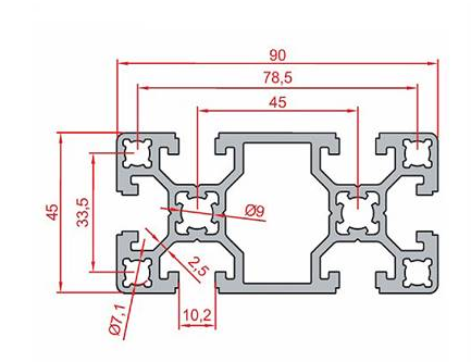 10 kanallı tasarım, profilin hem 45mm hem de 90mm yüzeylerinde daha fazla bağlantı noktası ve montaj esnekliği sunar. Standart 45 serisi T somunlar, köşe bentler ve diğer bağlantı elemanları ile tam uyumludur. Bu sayede karmaşık yapılar ve çok yönlü montaj gerektiren projeler için geniş olanaklar sağlar.