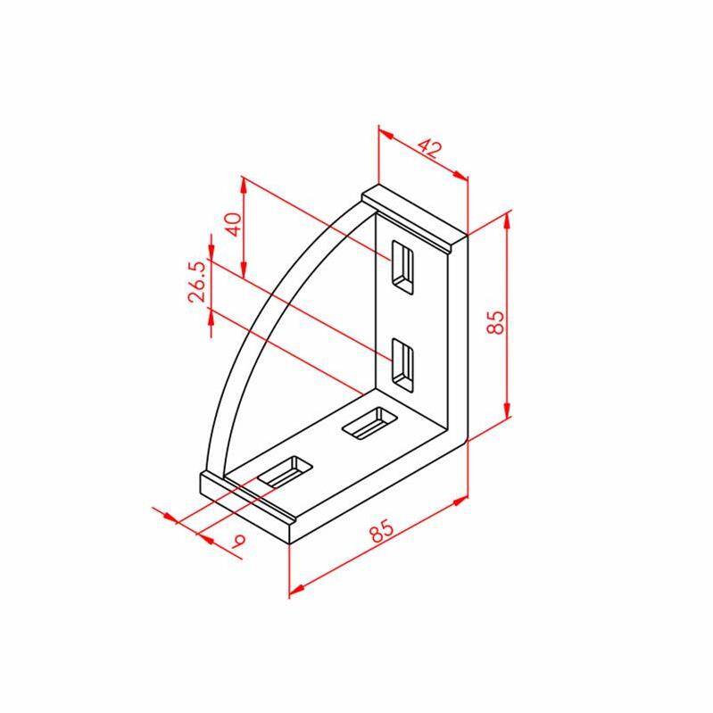 Bu uzun köşe bağlantı, özellikle 45x90 mm alüminyum ekstrüzyon profillerle sorunsuz bir şekilde kullanılmak üzere tasarlanmıştır. Güç gerektiren montaj uygulamalarında, köşeleri sağlam bir şekilde birleştirmek veya T şeklinde bağlantılar oluşturmak için ideal bir bağlantı elemanıdır.