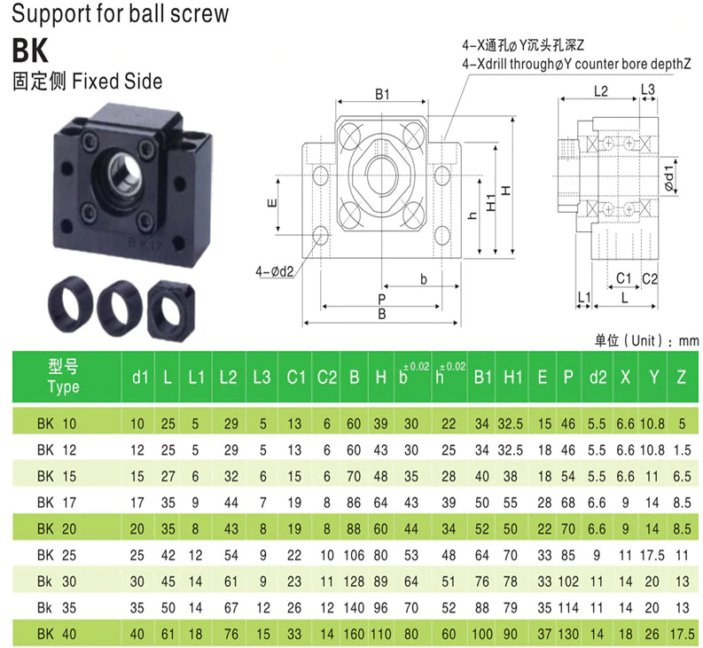 Bk 10 Vidalı Mil Uç Yatakları, servo veya step motor tahrikli CNC X, Y ve Z eksenlerinde yüksek tekrarlanabilirlik ve hassasiyet gerektiren uygulamalar için idealdir. Özellikle metal işleme, ağaç işleme ve kompozit işleme makinelerinde, takımın konumunu milimetrenin binde birine varan hassasiyetle kontrol etmek amacıyla rijit ve boşluksuz bir tahrik sistemi oluşturur.