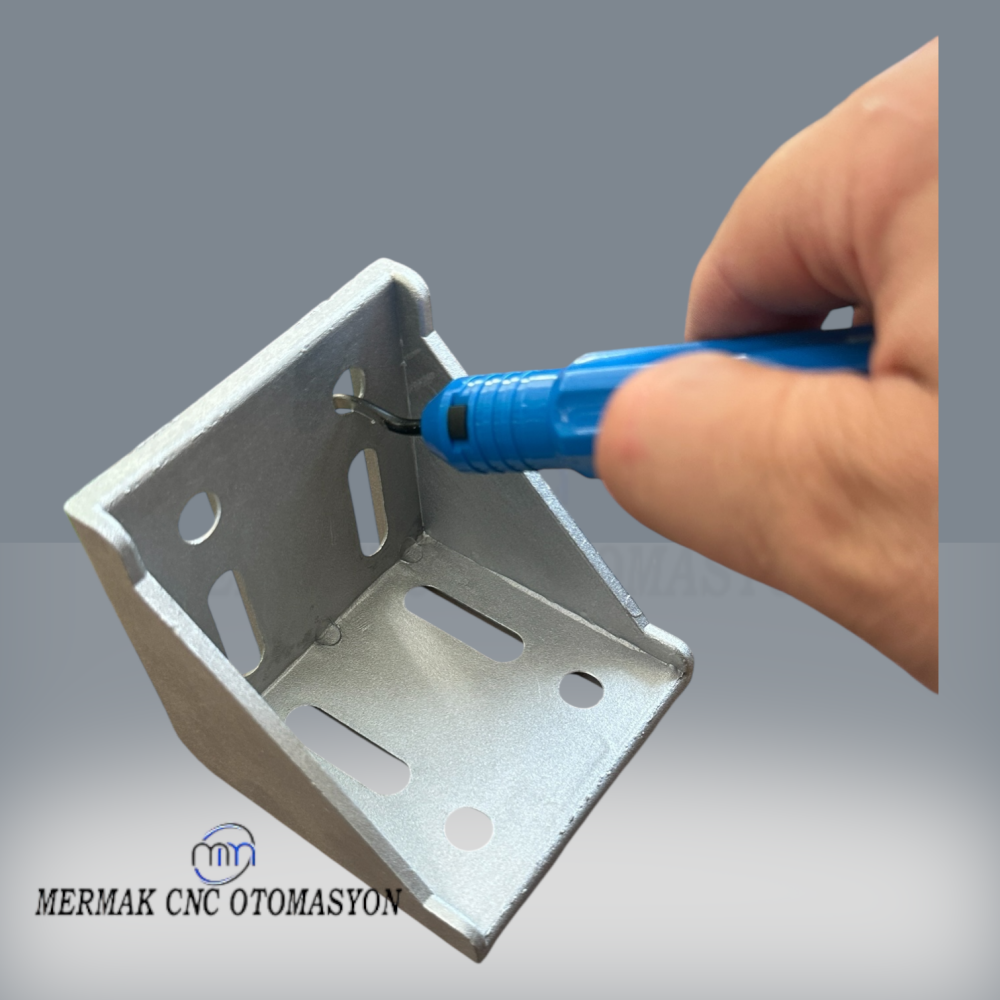 Kullanım Alanları: - CNC makinelerinde işlenen parçaların kenarlarında oluşan çapakların giderilmesi. - 3D yazıcı ile üretilen parçalardaki destek ve yüzey fazlalıklarının temizlenmesi. - Epoksi, reçine ve silikon kalıp işlerinde yüzey düzeltme ve kenar temizliği. - Plastik, alüminyum, metal, pleksi, akrilik gibi malzemelerin kenar pürüzlerinin alınması. - El işçiliği gerektiren hobi ve maket çalışmalarında rötuş işlemleri. - Montaj öncesi parça kenarlarının düzeltilmesi ve ürün kalitesinin artırılması. - Paslanmaz çelik, bakır ve pirinç parçalarda hassas köşe temizleme uygulamaları.