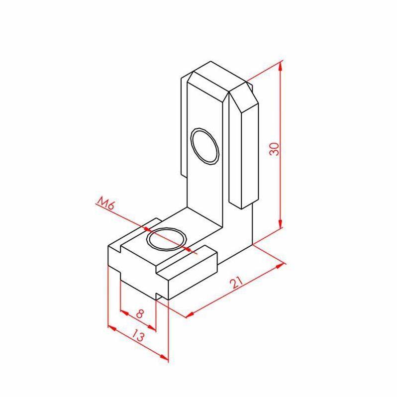 Gizli Köşe Bağlantı 30x30 90° K8 Bağlantı genellikle güç gerektirmeyen profillerde 90° açılarla montaj yapabilme olanağı sağlar.Adından da anlaşıldığı üzere 30x30 profiller ile uyumlu olup gizli köşe bağlantılar Kanalın içerisine girmesi sayesinde dışarıdan gözükmemekte ve daha estetik bir görüntü oluşturmaktadır.Pano,Çerçeve gibi ürünlerin montajında kullanılmaktadır.