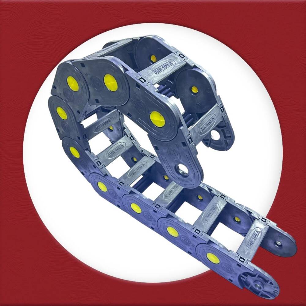 Yüksek hızlı ve hassas hareketli eksenlerde (X, Y, Z eksenleri) güç kabloları, sensör kabloları ve soğutma sıvısı hortumlarının güvenli ve düzenli bir şekilde taşınması için idealdir. Özellikle ağır talaşlı imalat yapan makinelerde, kesme sıvılarına ve talaş parçacıklarına karşı dayanıklılığı sayesinde kablo ve hortumların ömrünü uzatır, makinenin kesintisiz çalışmasını sağlar. Bu sayede makine arızaları minimize edilir ve üretim verimliliği maksimum seviyede tutulur.
