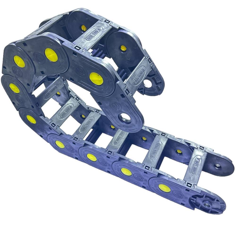 Endüstriyel otomasyon sistemlerinin vazgeçilmez bileşenlerinden olan Hareketli Kablo Kanalı 60X100 AĞIR SERİ, dinamik hareketli uygulamalarda güç, sinyal ve pnömatik/hidrolik hortumların düzenli ve güvenli bir şekilde yönlendirilmesi için tasarlanmıştır. Özellikle yüksek hızlı, yüksek ivmeli ve ağır yüklü sistemlerde kablo ve hortumların aşınma, bükülme ve kopma gibi risklere karşı korunması kritik öneme sahiptir. Bu ağır seri kablo kanalı, bu tür zorlu çalışma koşulları için özel olarak geliştirilmiş olup, sistemlerinizin kesintisiz operasyonel verimliliğini ve uzun ömürlü performansını garantiler.