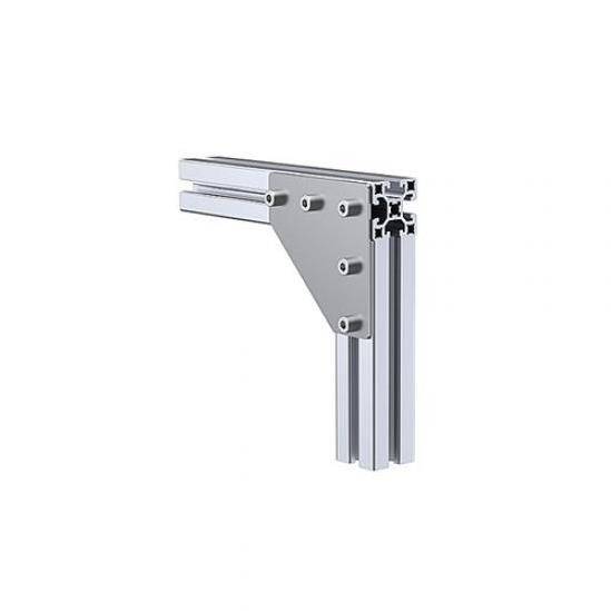 Bu bağlantı sacı, endüstriyel robotların, CNC makinelerinin veya otomasyon hücrelerinin iskeletini oluşturan alüminyum profil çerçevelerinin montajında idealdir. Yüksek rijitlik gerektiren noktalarda, titreşimi absorbe ederek ve ek mukavemet sağlayarak sistemin kararlılığını artırır. Özellikle hızlı hareket eden veya ağır yük taşıyan robot kollarının ve taşıyıcı sistemlerin montajında güvenilir bir çözüm sunar.