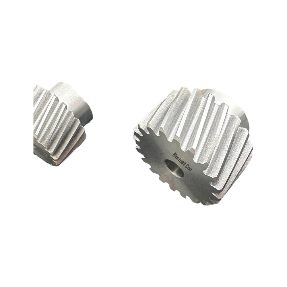 Kremayer dişli pinyonlar, düz kremayer dişli pinyon ve helis kremayer dişli pinyonlar olarak ikiye ayrılmaktadır. Pinyon Dişli, dişli çark sisteminde, dişli sistemini meydana getiren dişlilerden küçük olan dişliye Pinyon Dişli denir. Pinyon dişli dişli çark sisteminde genelde motordan çıkan ilk hareketi ana dişliye aktaran ve ana dişliden çap olarak daha küçük olduğu için daha hızlı devirde dönerek dişli çark sistemine tork sağlayan dişlidir. Pinyon dişliler ana dişliden daha hızlı döndükleri için daha çok aşınmaya ve hasara uğrayan dişli çeşididir. Pinyon dişli yapısal olarak farklı malzemelerden ve farklı tiplerde imalatı yapılmaktadır.Mermak Cnc Marketi sitesi üzerinden alacağınız kremayer dişli pinyonlarını Kredi kartına taksit yada havale seçeneklerini kullanarak en uygun fiyatla ürünlerimize sahip olabilirsiniz.