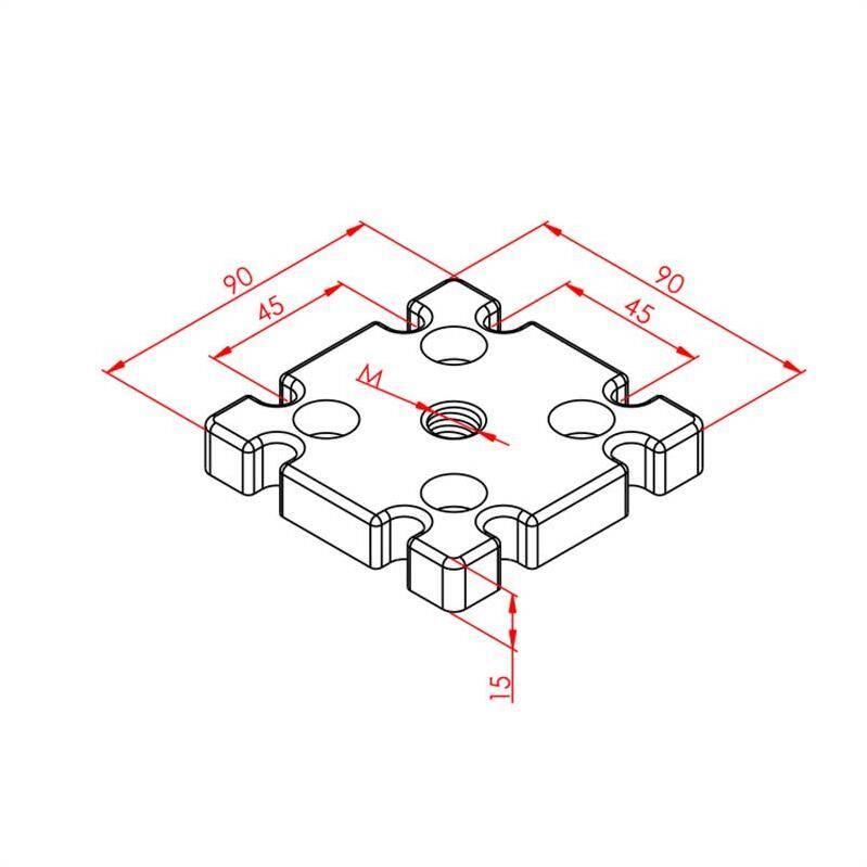 Ürün genellikle yüksek mukavemetli alüminyum veya alaşımlarından üretilir. Sağlam yapısı sayesinde, uygun 90x90 profillerle ve M16 cıvatalarla doğru montaj yapıldığında, endüstriyel konstrüksiyonlarda veya makine şaselerinde kullanılan ayakların stabil bir şekilde bağlanmasına olanak tanır. Maksimum taşıma kapasitesi, kullanılan profilin ve cıvatanın mukavemetine de bağlıdır.