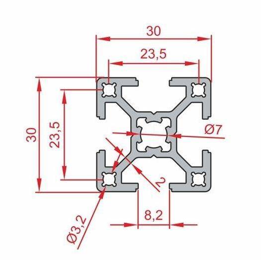 30x30 Sigma Profil 8 Kanal'ın 8mm genişliğindeki kanalı, piyasada yaygın olarak bulunan birçok standart bağlantı elemanı ve aksesuar ile uyumludur. Bu modüler tasarım, farklı markaların T-somunları, köşe bağlantıları ve diğer aksesuarlarını projenizde kolayca kullanmanıza imkan tanır.