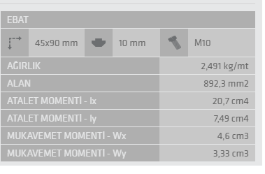 45x90 hafif tip sigma profilin metrekare başına ağırlığı, standart 45x90 profillere göre daha düşüktür. Bu durum, özellikle taşınabilirlik veya düşük atalet gerektiren sistemlerde avantaj sağlar. Hassas ağırlık hesaplamaları için teknik veri föyümüzdeki yoğunluk ve kesit alan bilgilerini kullanabilirsiniz. Mermak CNC olarak sunduğumuz bu profil, projenizin toplam ağırlığını optimize etmenize yardımcı olur.