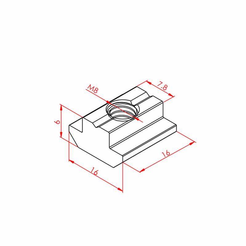 Ürünün metrik M8 diş yapısı, endüstriyel standartlardaki birçok bağlantı elemanıyla doğrudan uyumluluk sunarken, K8 kanal boyutu ise 8mm genişliğindeki T kanallara hassas bir entegrasyon sağlar. Geleneksel tırtıllı somunlardan farklı olarak, bu T kanal somunu profilin üst kısmından yerleştirilemez; bunun yerine, profilin baş kısmından kanala sürülerek konumlandırılır. Bu montaj yöntemi, somunun kanal içinde daha sağlam bir tutuş sergilemesine, profilin iç geometrisine tam oturmasına ve dolayısıyla daha yüksek çekme ve kesme mukavemetlerine ulaşılmasına olanak tanır. Böylece, oluşturulan çerçeveler, robotik kollar veya taşıyıcı sistemler maksimum stabilite ve yapısal bütünlük kazanır.